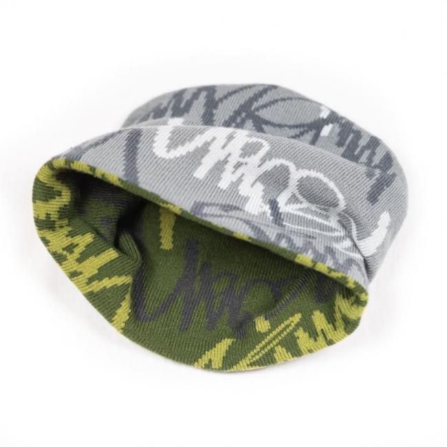 TIMESCAN " SCRIPT CAMO REVERSIBLE BEANIE " CONCRETE/ WOODLAND