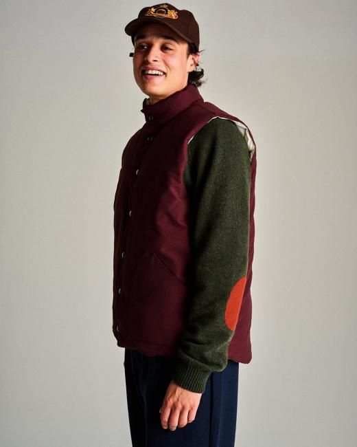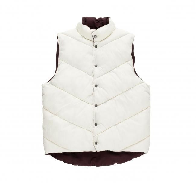 POP TRADING COMPANY " QUILTED REVERSIBLE VEST IN FUDGE/ OFF WHITE "