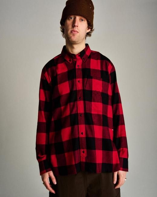 POP TRADING COMPANY " CHECKED BD SHIRT IN BLACK/ RED "