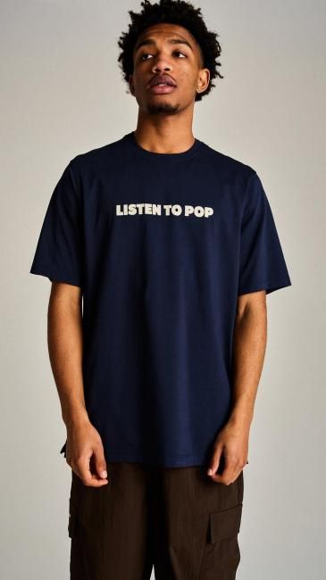 POP TRADING COMPANY " SKATEMUZIK T-SHIRT IN NAVY "